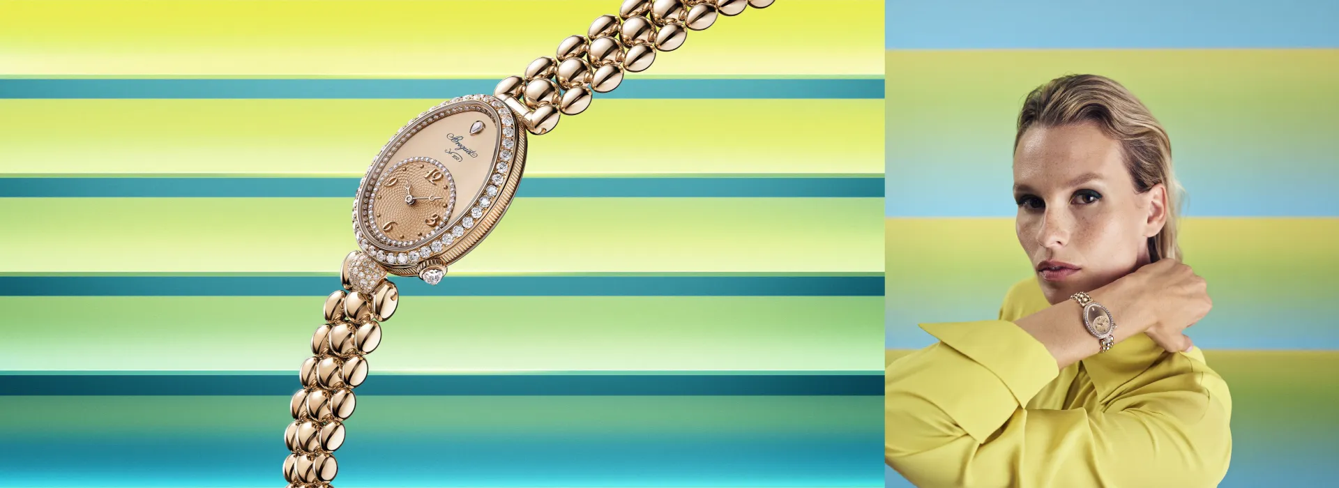 Created in collaboration with Time Avenue, this 43-mm watch features a sunburst green gradient dial that shifts with light and movement.