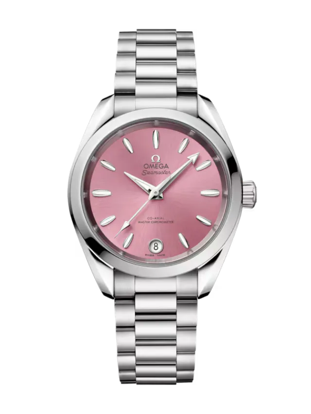 The Seamaster Aqua Terra is a superb tribute to OMEGA’s rich maritime heritage. This 34 mm model, has a symmetrical case and crown in fully polished stainless steel and a wave-edged design featured on the back.