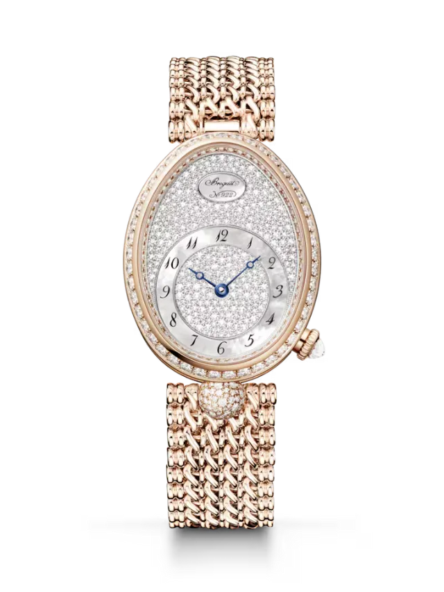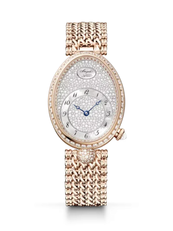 Breguet Reine de Naples 8938 BR/8D/J20 D0 – A sublime expression of feminine elegance and haute-horlogerie, this exquisite timepiece features a delicately shaped oval case in rose gold with a diamond-set bezel, beautifully complemented by a refined white dial with elegant numerals and blued Breguet hands. Powered by a precision automatic movement and paired with a supple blue alligator leather strap, the Reine de Naples 8938 blends classic sophistication with luxurious details, making it an exceptional choice for those who cherish timeless design and impeccable craftsmanship in a statement-making luxury watch.