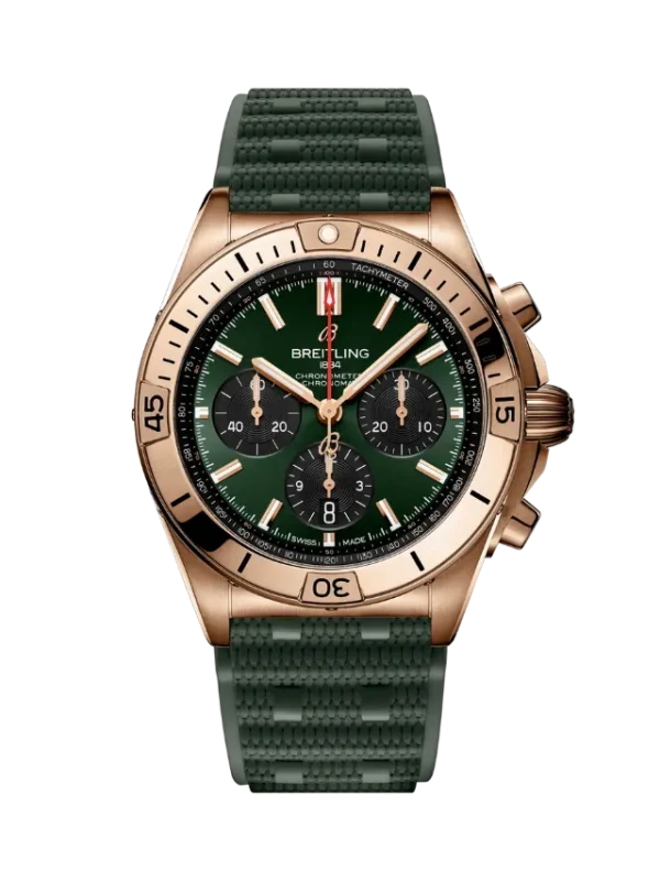 Breitling Chronomat B01 42 RB0134101L1S1 – A striking expression of sporty elegance and precision Swiss engineering, this bold 42 mm Chronomat features a rich blue dial with luminous hands and markers, highlighted by signature rider tabs on the bezel and a robust RubberBreitling Chronomat B01 42 RB0134101L1S1 bracelet. Powered by Breitling’s in-house Caliber 01 automatic movement with a generous power reserve, this timepiece delivers exceptional performance and reliability. With its dynamic design, refined finishing, and versatile appeal, the Chronomat B01 42 is perfect for the modern enthusiast who values both enduring style and high-performance craftsmanship.