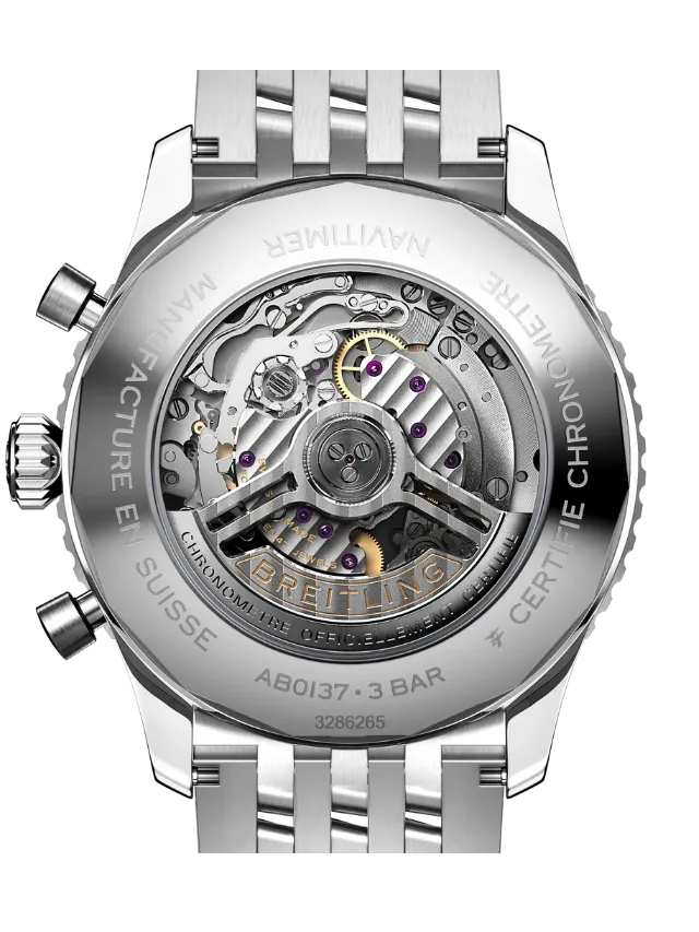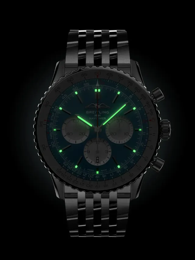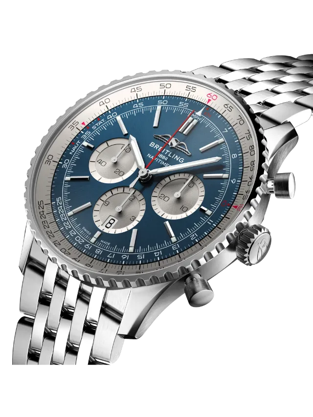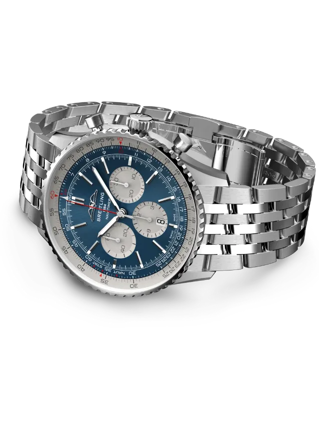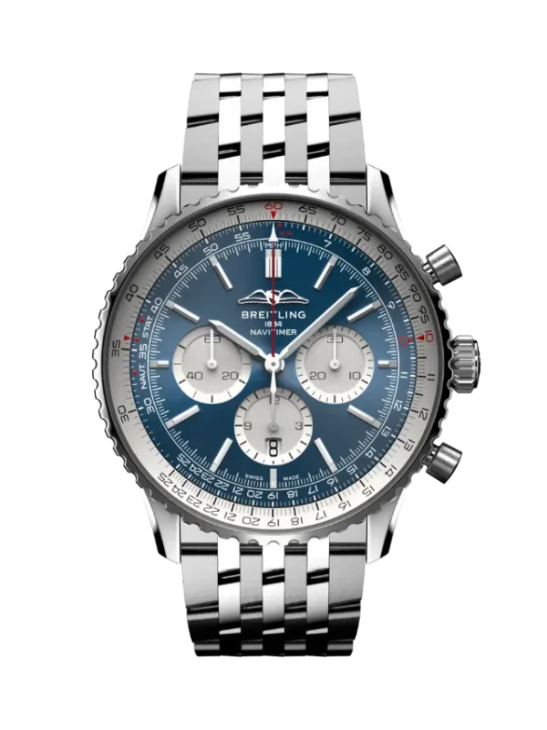 Breitling Navitimer B01 Chronograph 46 AB0137211C1A1 – A true symbol of aviation heritage and Swiss precision, this powerful 46 mm chronograph features a striking blue dial with classic Navitimer subdials and the iconic circular slide rule bezel, all driven by Breitling’s in-house Caliber B01 automatic movement for exceptional performance and reliability. Housed in a polished stainless-steel case and paired with a matching bracelet, this watch blends bold presence with refined craftsmanship, making it equally suited for professional pilots and style-savvy enthusiasts. With its dynamic design, technical sophistication, and legendary lineage, the Navitimer B01 Chronograph 46 is the perfect choice for those who value both timeless style and high-performance engineering.