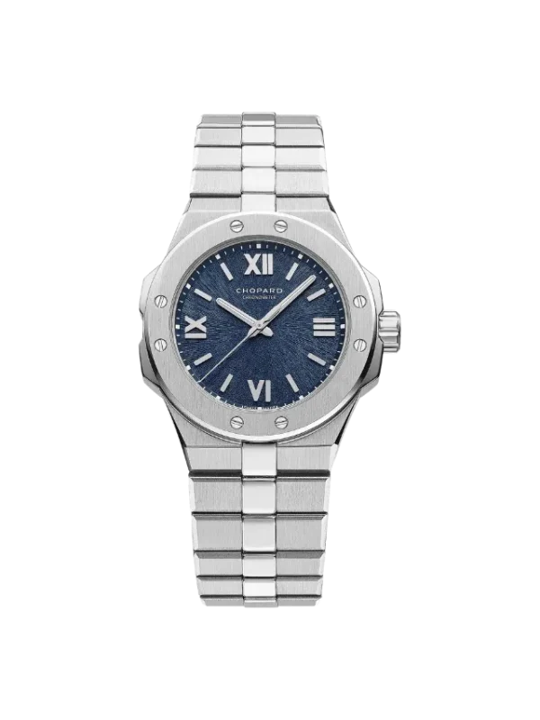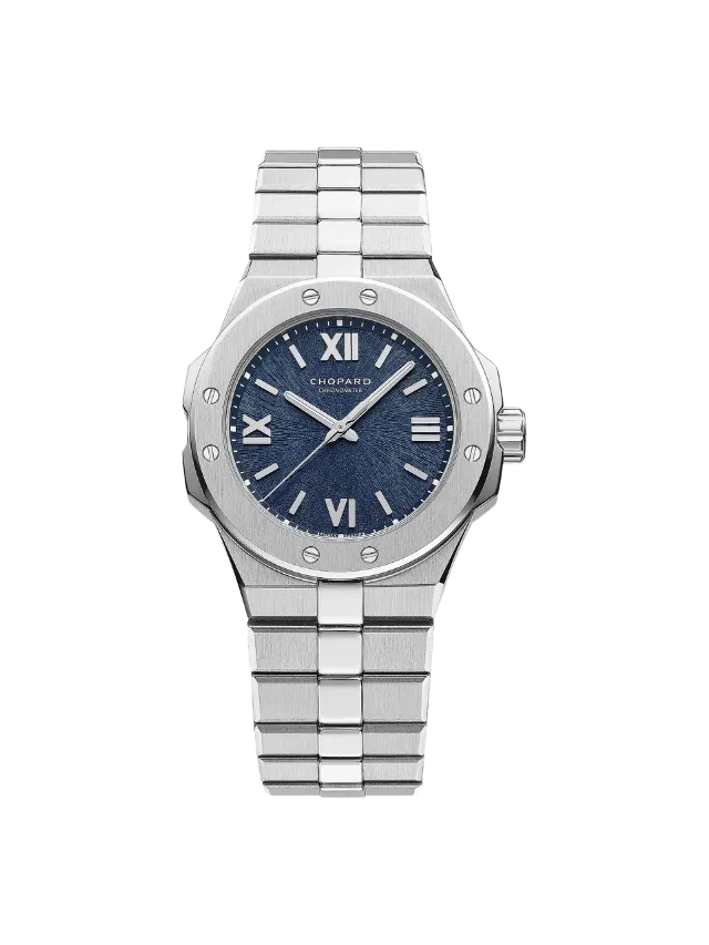 Contemporary, refined and assertive, the new sport-chic Alpine Eagle timepiece collection is a contemporary reinterpretation of the St Moritz, the first watch created in 1980 by Karl-Friedrich Scheufele, now Co-President of the Maison Chopard. Conceptualized and personally designed by him, the Alpine Eagle was driven by his passion for the Alps and by the lofty power of the eagle that reigns supreme there. Crafted from an exclusive, ultra-resistant, light-reflecting metal named Lucent Steel™, it beats to the rhythm of a chronometer-certified movement. Alpine Eagle is dedicated to contemporary eagles, those aspiring individuals who outperform in their daily lives and whose vision inspires and elevates. With foresight and determination, they act on the challenges of tomorrow and are innately aware of the importance of environmental issues.Chopard Alpine Eagle 33 298617-3001