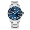 The Longines Conquest L3.759.4.96.6 has a quartz movement, 30 Bar (300 meters) water resistance, Blue dial color and Stainless Steel case material & bracelet. The Conquest line perpetuates the spirit of conquest of all those who have dared to go further than others in their quest for new horizons. The same spirit has been behind the models in the Conquest collection since 1954. Each watch contains a subtle fusion of performance and elegance, including the most demanding technical features.Without sacrificing elegance, the Conquest line perpetuates the spirit of conquest of all those who have dared to go further than others in their quest for new horizons. The same spirit has been behind the models in the Conquest collection since 1954. Each watch contains a subtle fusion of performance and elegance, including the most demanding technical features.Over time, Longines has built a wide variety of high-beat stopwatches, chronographs, chronometers, and timekeeping instruments. Its watchmakers truly blazed trails and while the brand continues to challenge itself and remains at the industry’s cutting edge of innovation, Longines is rightfully proud of some of the technology it has introduced to the world over the years.