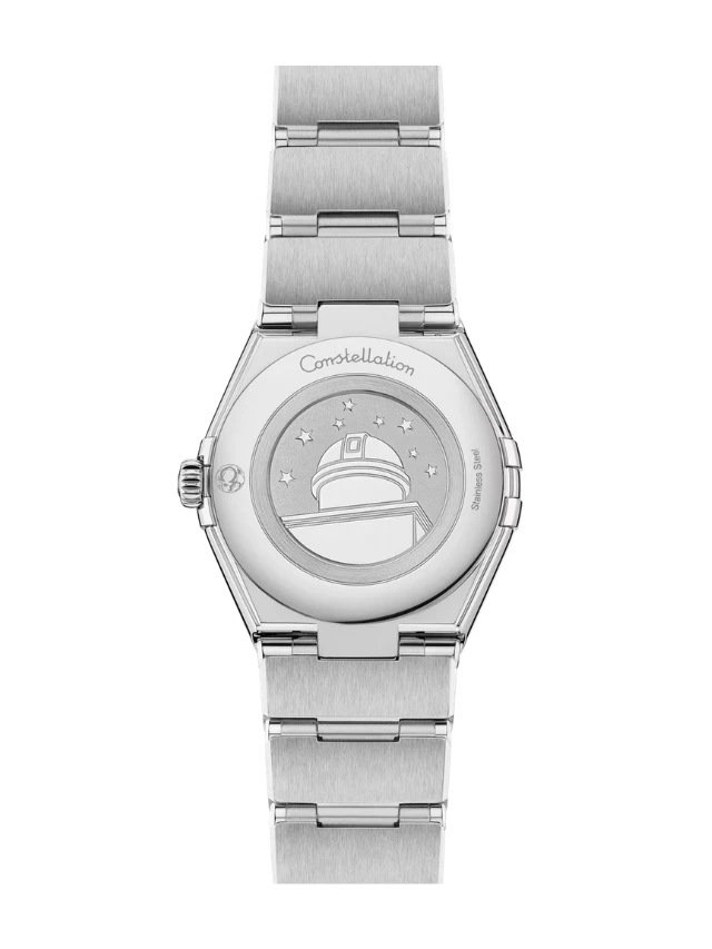 The watch is presented on a signature polished mono-rang bracelet with easy comfort-adjustment, and is powered by the OMEGA Calibre 4061, which sits behind a stamped Constellation Observatory medallion on the caseback.