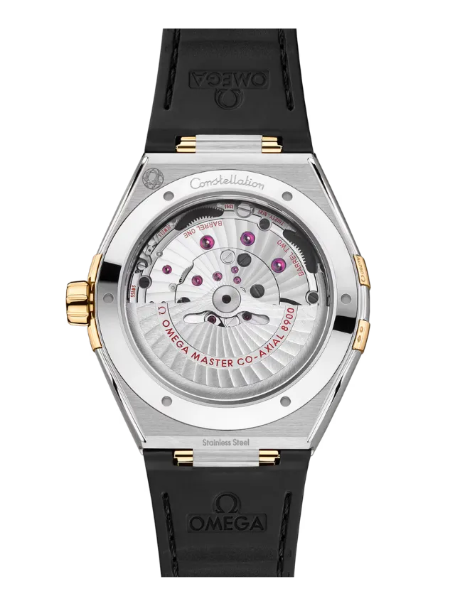 At the heart of this timepiece is the OMEGA Co-Axial Master Chronometer Calibre 8900, visible through the scratch-resistant sapphire crystal.