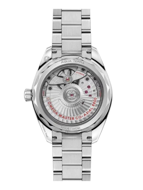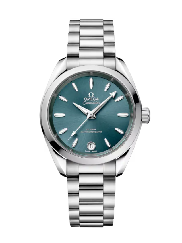 The Seamaster Aqua Terra is a superb tribute to OMEGA’s rich maritime heritage. This 34 mm model, has a symmetrical case and crown in fully polished stainless steel and a wave-edged design featured on the back.