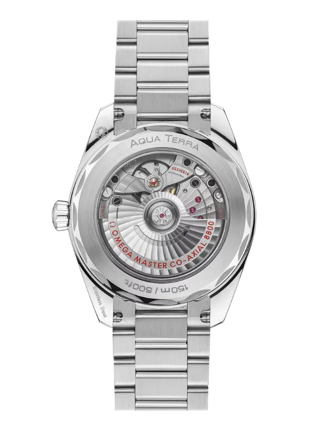 The Seamaster Aqua Terra is a superb tribute to OMEGA’s rich maritime heritage. This 38 mm model, has a symmetrical case and crown in fully polished stainless steel and a wave-edged design featured on the back.