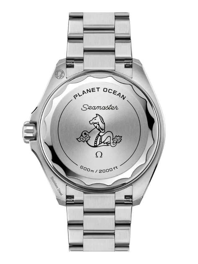 Powered by the Co-Axial Master Chronometer Calibre 8912, this Seamaster Planet Ocean is worn on a polished-brushed bracelet in stainless steel, featuring an extendable foldover rack-and-pusher with an extra diver extension. On the reverse side of the watch, the screw-in caseback is made from polished-brushed grade 5 titanium, and displays OMEGA’s famous seahorse emblem.