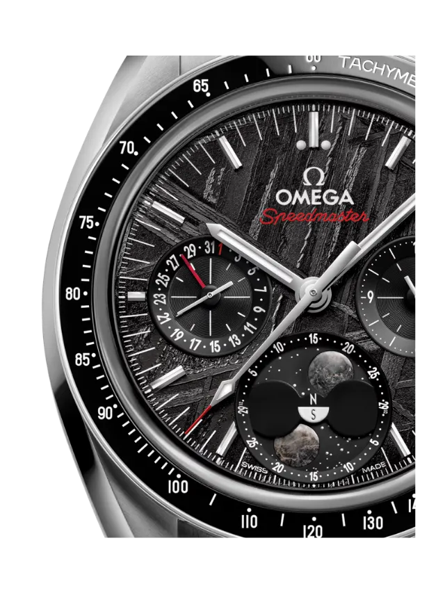 The Speedmaster is one of OMEGA’s most iconic timepieces, having been a part of all six lunar missions. With its two moons made from genuine moon meteorite, this 43.00 mm Moonphase watch is a striking tribute to that distinguished legacy.