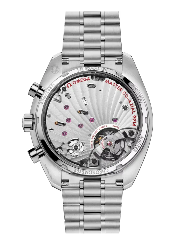 Powering the timepiece is the OMEGA Co-Axial Master Chronometer 9914 manual winding chronograph calibre, which has been officially certified by METAS.