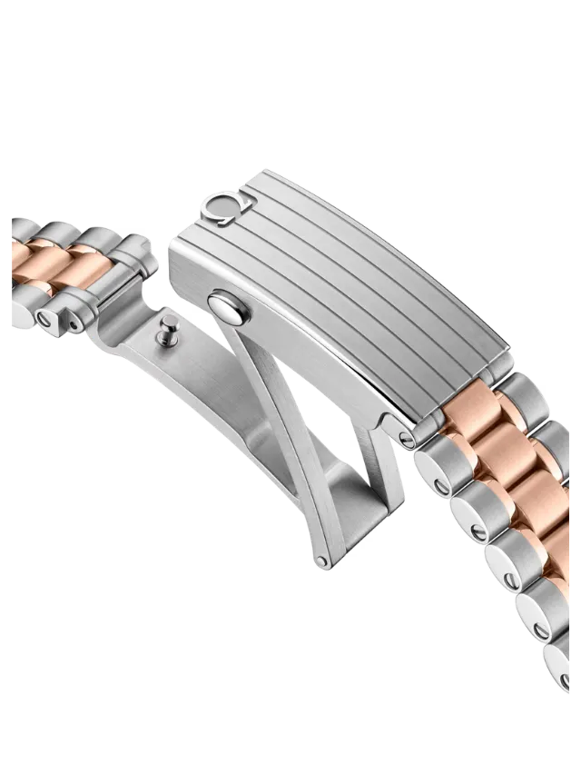 The watch is worn on a polished-brushed bracelet with OMEGA’s patented comfort release adjustment system, and is powered by the OMEGA Co-Axial Master Chronometer Calibre 3861.