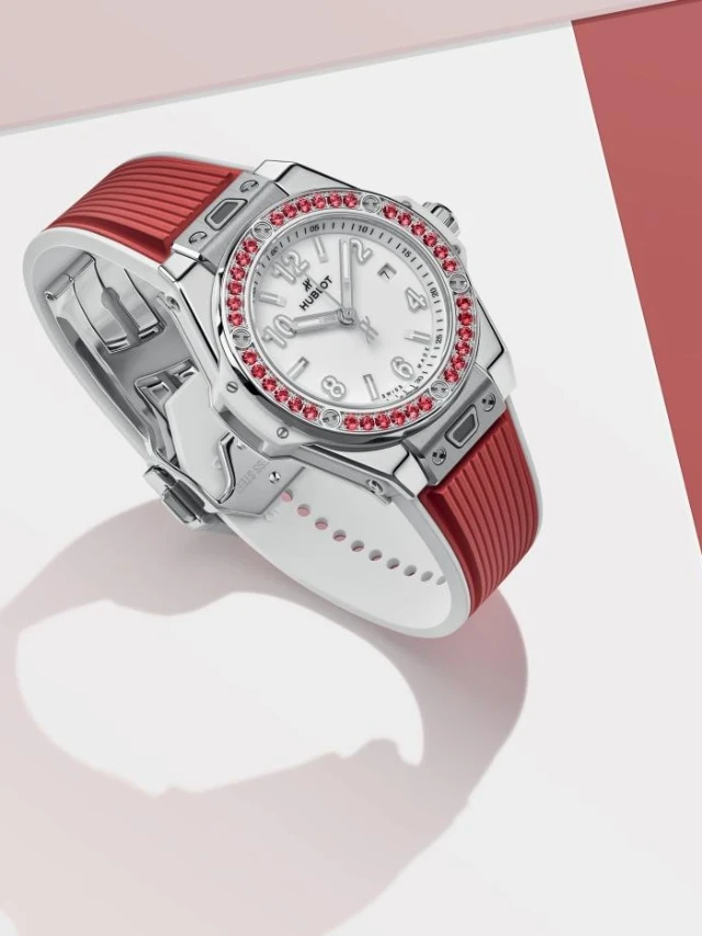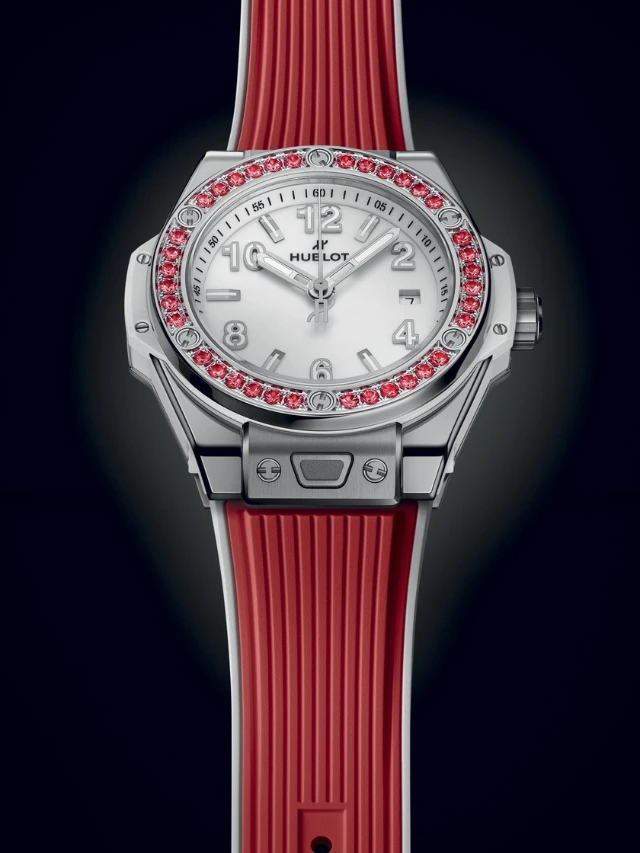 The Big Bang One Click Joyful Steel Red introduces colour and flexibility into the Big Bang identity. The One Click strap system allows instant changes, making the watch dynamic and expressive.